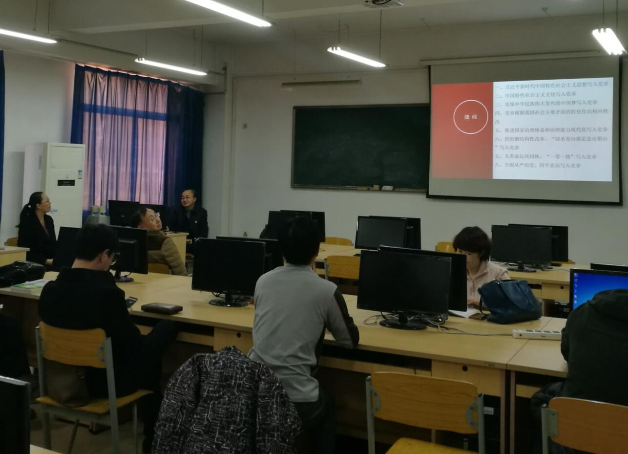 12月21日,计算机教学实验中心与教育技术学系党支部继续开展“读原文 悟原理”系列学习活动。本次学习依然采用线上线下相结合的学习模式,支部书记巢进波同志提前在支部群里发布了中国共产党章程修正案的相关学习资料,全体党员认真完成了原文阅读并深入思考,然后在信息馆421实验室召开支部大会,面对面交流学习感悟。