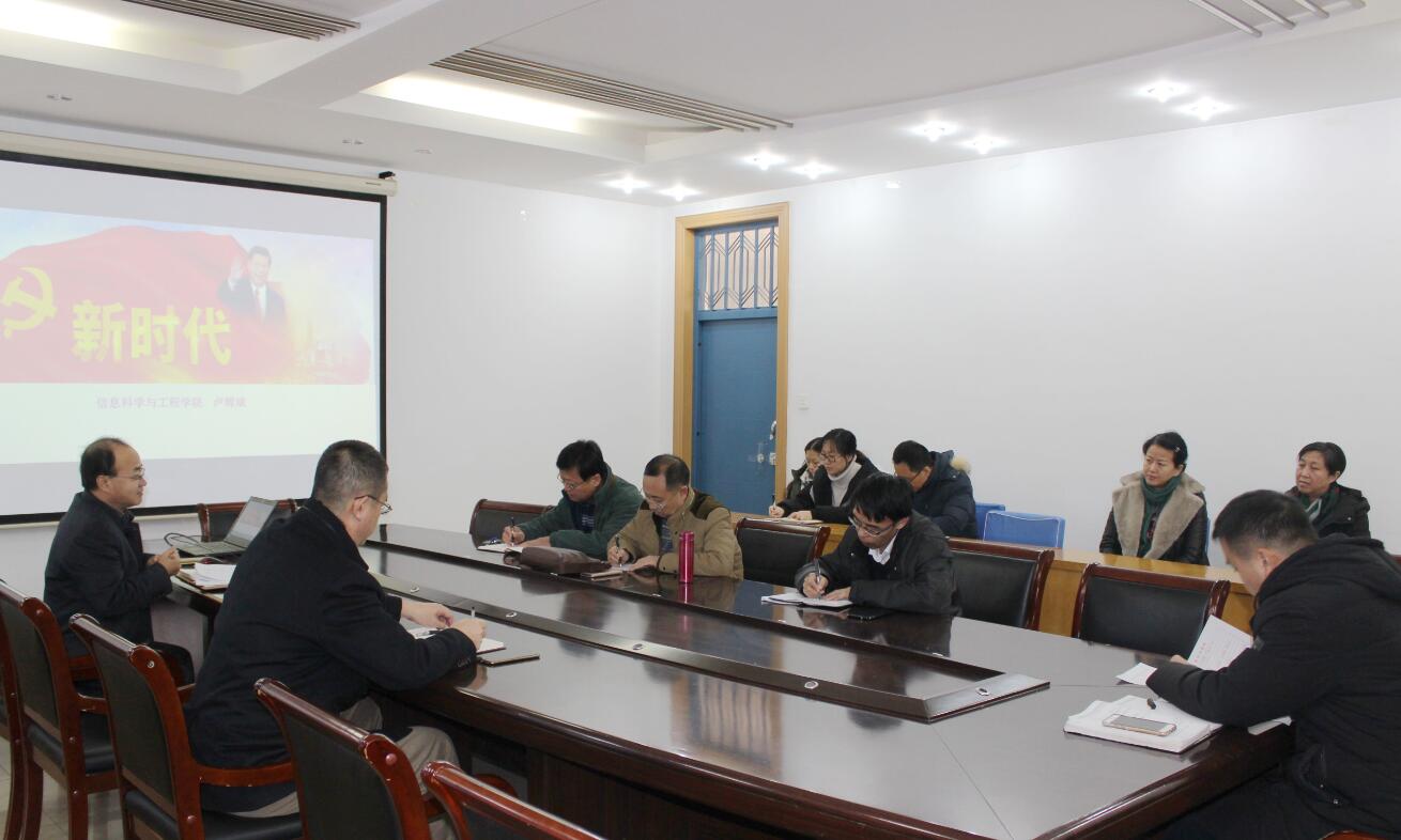 12月14日上午10时,机关党支部全体党员参加党委书记卢辉斌作题为《十九大魂和纲》的专场报告集体学习。 报告从牢牢把握大会主题、把握党从胜利走向胜利的伟力之源、把握党的强国雄心与使命担当、把握当代中国发展进步迅速崛起的深层规律、把握继往开来的历史新航标五个方面全面解读党的十九大精神。讲座总结改革开放以来、新中国成立以来、中国共产党成立以来的历史经验,如何深化对“新时代”的研究,如何认识习近平新时代中国特色社会主义思想内容进行了阐述。