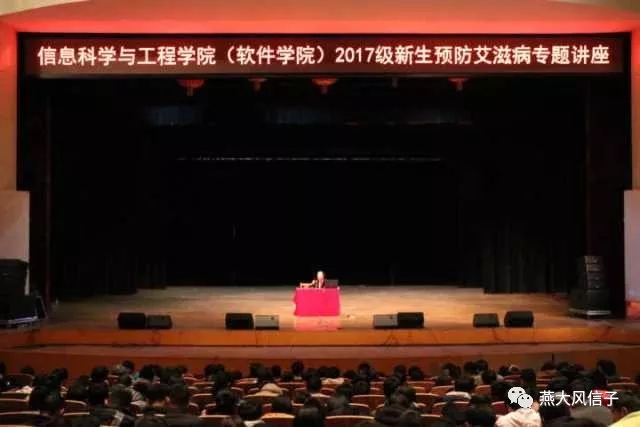 为加深青年大学生对艾滋病知识的了解,引导青年大学生关爱和反歧视艾滋病者,2017年12月5日,信息科学与工程学院(软件学院)在燕山大学东校区大学生活动中心109室召开2017级新生艾滋病专题讲座,本次专题讲座我院荣幸的邀请到李铭婷副主任向同学们剖析艾滋病。苏丽丽老师主持了本次大会,信息科学与工程学院(软件学院)全体学生聆听了本次专题讲座。