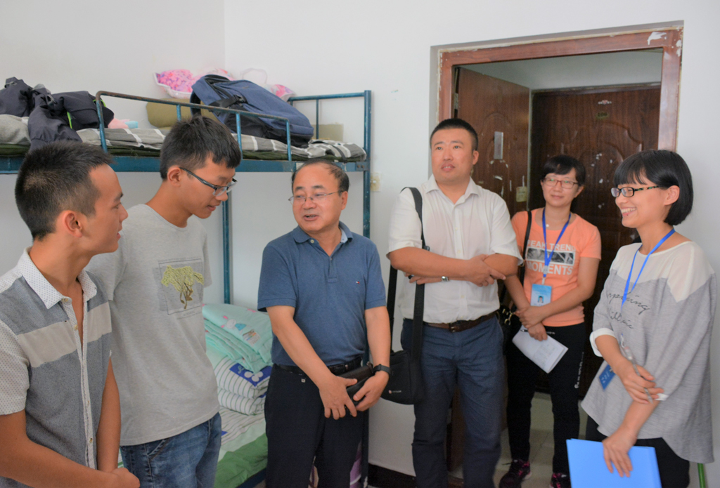 卢书记先后走访了我院迎新工作站、党员先锋岗及学生公寓。每到一处,他都亲切地与新生辅导员、工作人员以及志愿者交谈,对他们的辛苦付出表示感谢,对发现的问题现场办公,责成相关负责人第一时间处理。卢书记叮嘱新生辅导员要把工作进一步做实做细,努力给新生及其家长提供热情、周到、细致、贴心的优质服务,方便新生尽快适应新环境。