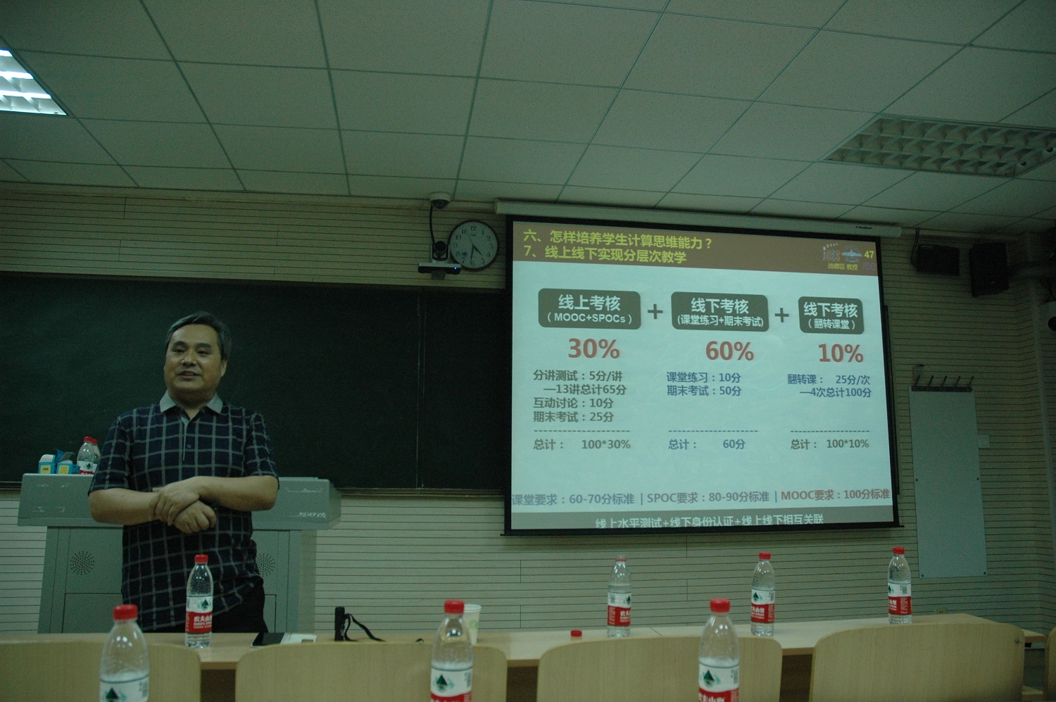 随后,战德臣教授作为教育部高等学校大学计算机课程教学指导委员会委员,高屋建瓴地解读了计算思维的内涵是什么,大学生为什么要学习计算思维,《大学计算机-计算思维导论》课程讲哪些内容,以及如何讲授才能更好地培养大学生的计算思维能力等一系列大家极为关注的问题。对我校计算机课程的教学改革尤其翻转课堂的组织与实施给予了高度地评价。