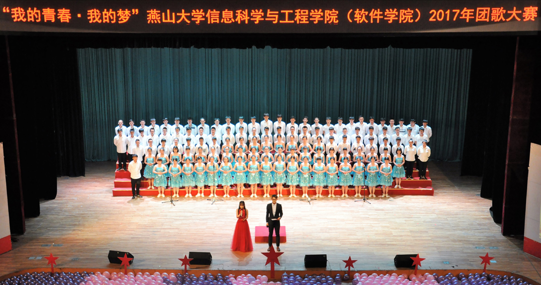 为了进一步强化全院团员青年“知团、懂团、爱团”意识,提升对共青团组织的光荣感和组织认同感,进而做一名合格的共青团员, 6月12日19:00,燕山大学信息科学与工程学院(软件学院)“我的青春,我的梦”团歌大赛在东校区大学生活动中心拉开帷幕。信息科学与工程学院(软件学院)党委书记卢辉斌、院党委副书记、副院长陈革新出席本次大赛。本次大赛特邀信息科学与工程学院教授合唱团徐成谦老师,任大伟老师,顾广华老师,李浩然老师,张晓玲老师以及张莹老师担任评委,