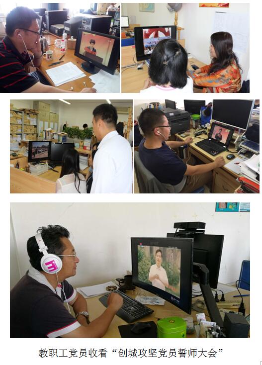 按照学校组织部要求,6月13日(周二)上午9点,信息科学与工程学院党委组织教职工党员以各种形式收听收看秦皇岛电视台二套全市“创城攻坚党员誓师大会”。 秦皇岛市创建全国文明城市工作已经进入到了最后的冲刺阶段。为确保创建工作取得优异成绩,我市将吹响创城攻坚的冲锋号,动员广大党员同志充分发挥能打硬仗、善克难关的先锋队作用,深入一线、攻坚克难,夺取创城决战的最终胜利。