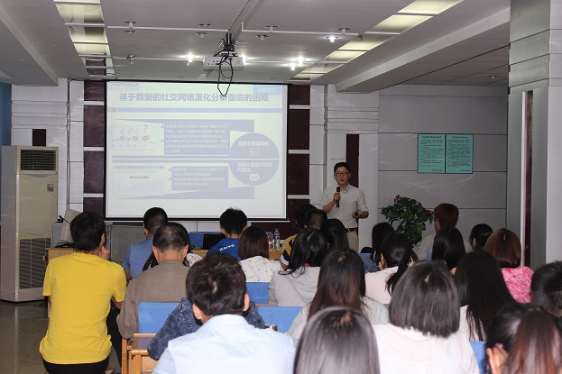 5月15日上午9点,应信息学院邀请,中国科学院计算技术研究所研究员王元卓在我校东校区信息馆 401学术报告厅为全院师生做了题为“社交网络的演化分析”的学术报告。报告会由信息科学与工程学院院长任家东主持。