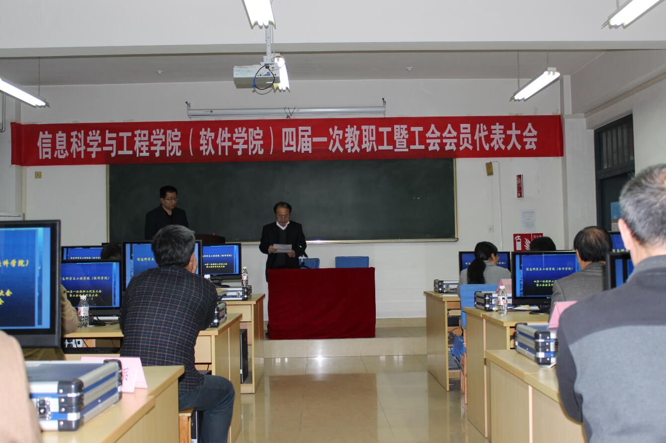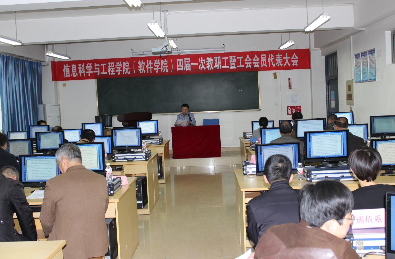 5月5日下午2:30,信息科学与工程学院(软件学院)在信息馆317多媒体教室成功召开了四届一次教职工代表大会暨工会会员代表大会。出席本次大会的有学院领导班子成员和教职工代表,部分退休教师列席了会议。会议由院工会主席李浩然主持。