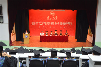 6月29日下午3:00,信息科学与工程学院(软件学院)2014届本科生毕业典礼暨学位授予仪式在东校区第二教学楼演讲厅举行。信息科学与工程学院党委书记卢辉斌,院长任家东,副院长练秋生、王常武、齐跃峰以及各院系相关领导出席,典礼由学院党委副书记、副院长产佳主持。