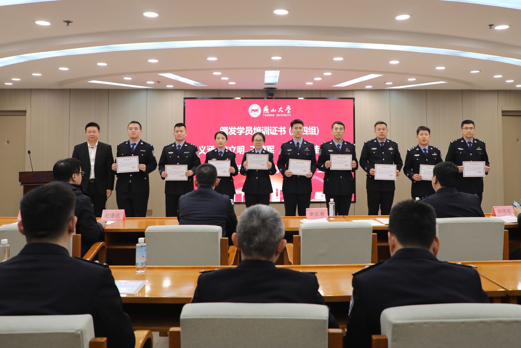 结业仪式前,全体学员集体参观了燕山大学校史陈列馆、东北亚古丝路文明博物馆和党员组织生活馆,进一步感受燕山大学深厚的文化底蕴与红色传统,深化了校警之间的了解与认同。