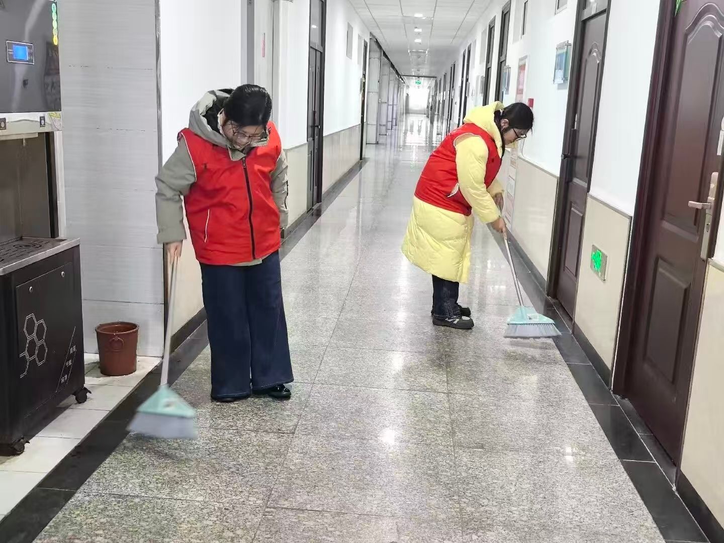 在“燕行清尘·共守书香”行动中,志愿者们迎寒而上,分工协作,全面清扫路面积雪、深度清洁公共区域。从路面扫雪铲冰到室内地面拖洗、杂物清理,志愿者们用实际行动扫出“平安路”,擦亮“文明窗”,为冬日的校园增添了别样的温暖与亮色。
