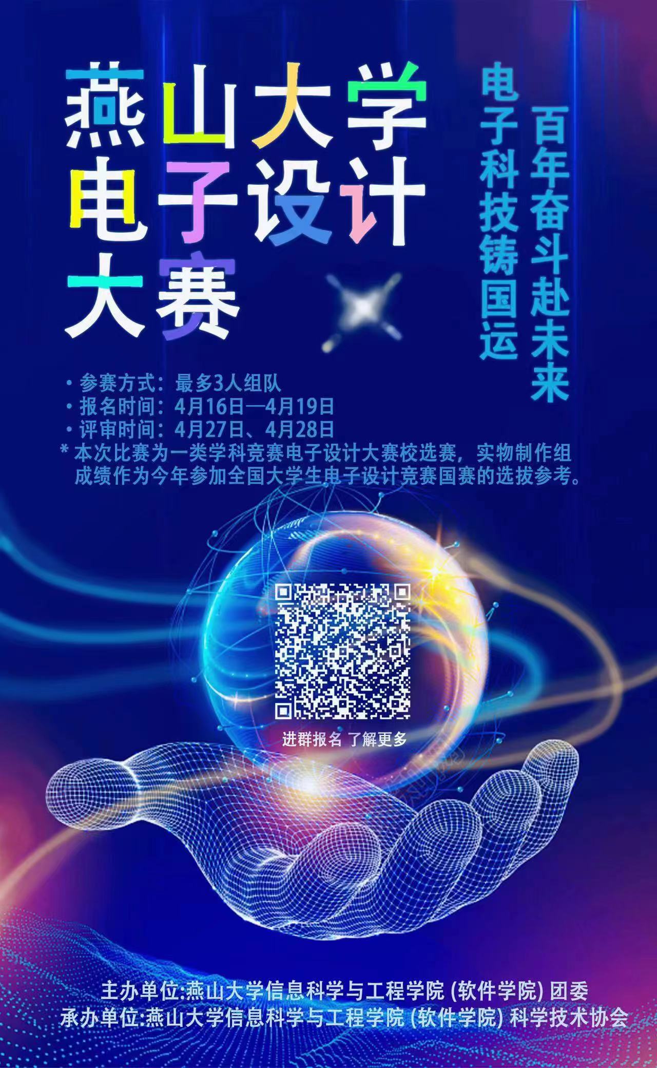党的二十大报告中,首次将教育、科技、人才三大战略进行统筹部署。报告指出,教育、科技、人才是全面建设社会主义现代化国家的基础性、战略性支撑。作为当代大学生,我们更应该积极响应国家号召,努力学习专业知识,并运用所学知识能动地改造世界。借此时机,我们将展开燕山大学电子设计大赛暨大学生电子设计大赛校选赛,现将相关事宜通知如下: